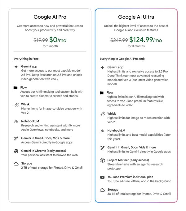 但是Ultra版几乎解锁了全部功能,包括Veo 3、Imagen 4、Gemini Deep Think模式、30TB云存储、最早体验新模型的资格,还有Project Mariner多任务智能体,能自动帮你订票、下单、写总结……