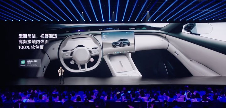 YU7 这次还在豪华感和舒适性上下了不少功夫,座舱大面积采用了软质材料包裹,前排两张座椅都支持 123° 的零重力模式,后排座椅也支持 135° 的靠背调节。