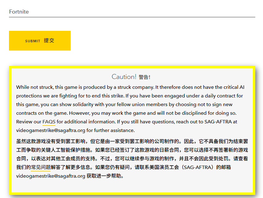 SAG在三月的公开信中提到,已有超过 160 款游戏签署了临时协议和独立协议,经查询,《堡垒之夜》并不在此列