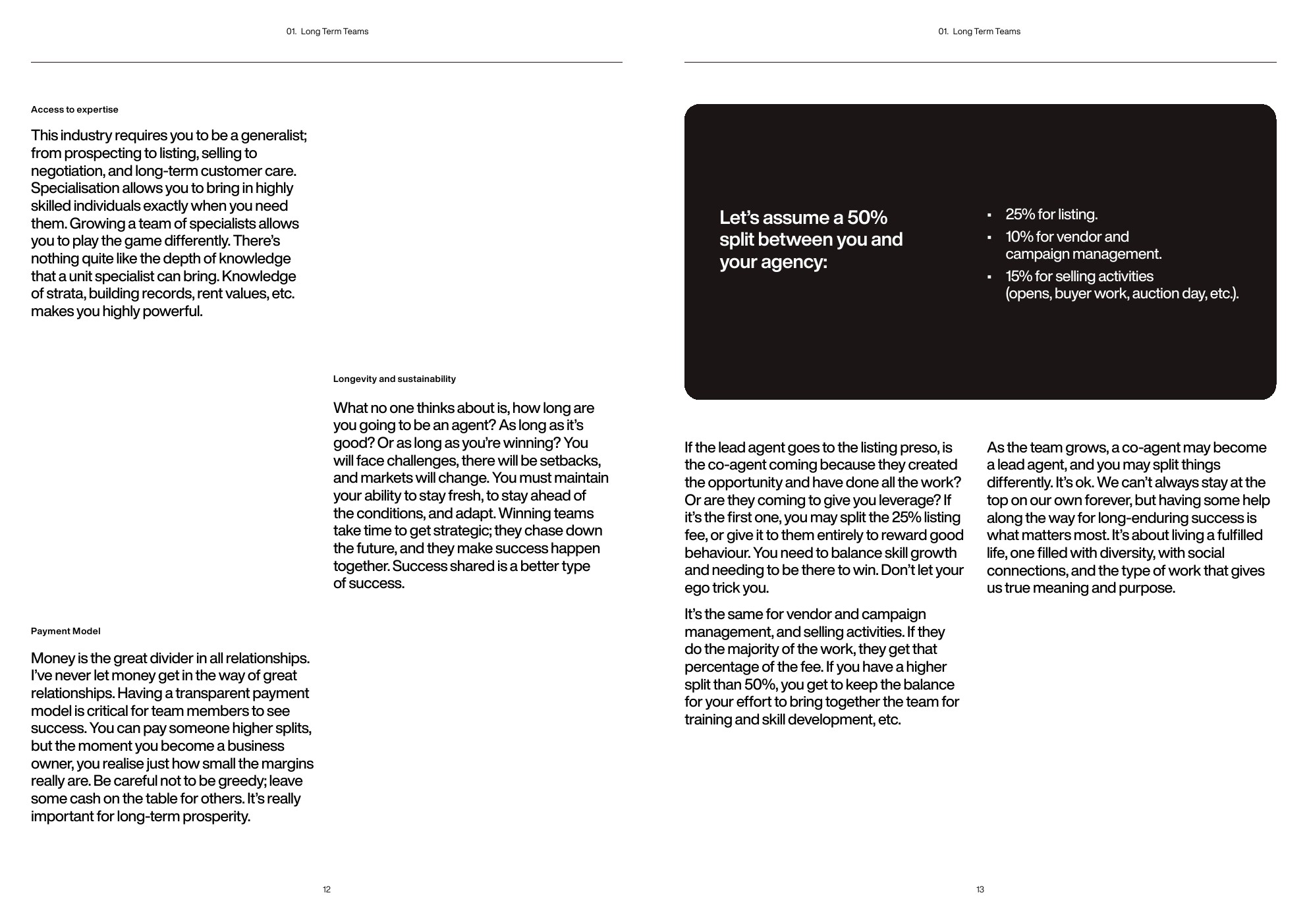 构建一个长期持久的公司需要从自私的稀缺心态转变为利用丰富的资源。与他人一起构建是有趣的,前提是价值观、期望和增长或盈利模式一致。每个人都会经历不同的生活阶段、生活事件、市场和业务周期。能否识别下一步并成功帮助人们度过这些过渡期是关键。