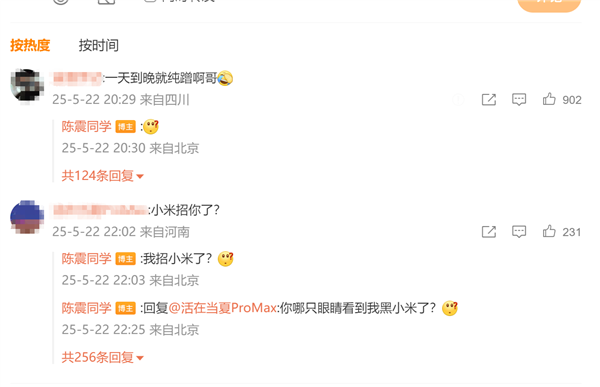 随后,陈震则怼网友:我招小米了?
