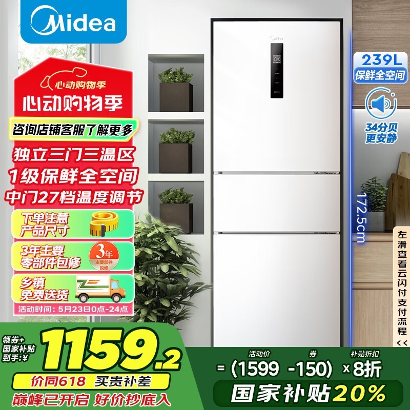 美的三门小冰箱MR - 251WTPE京东超值优惠