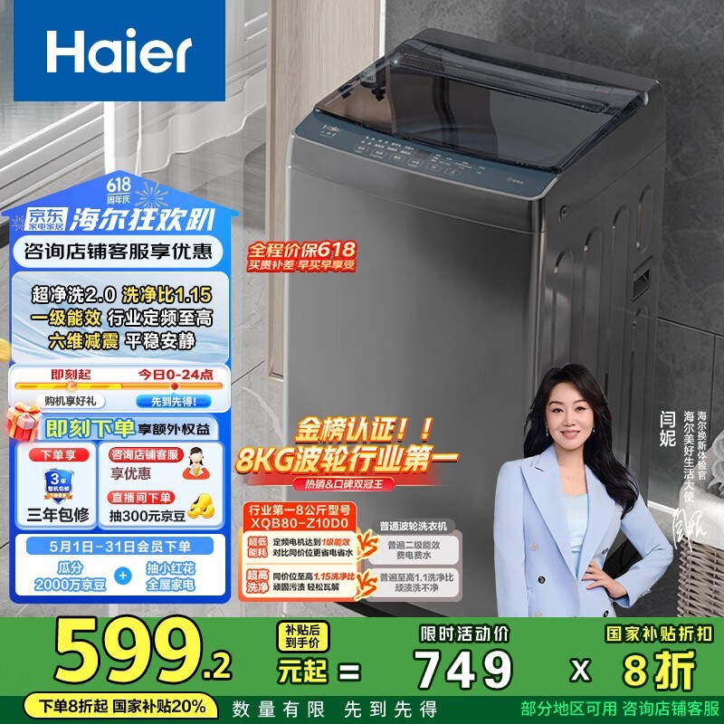 海尔Haier XQB80 - Z10D0洗衣机,优惠后低至522元
