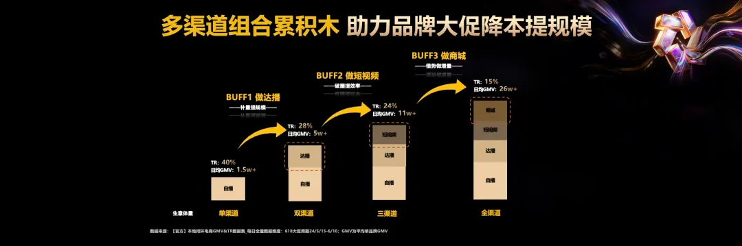 除了自播之外,达播、短视频、商城的全渠道协同,则可以成为品牌在大促期间的多重BUFF,在关键节点上创造更高的内容与转化效率。
