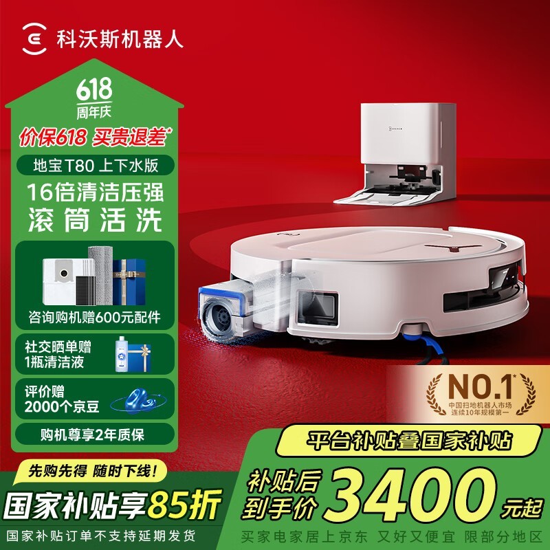 科沃斯T80上下水版扫拖一体机限时特惠