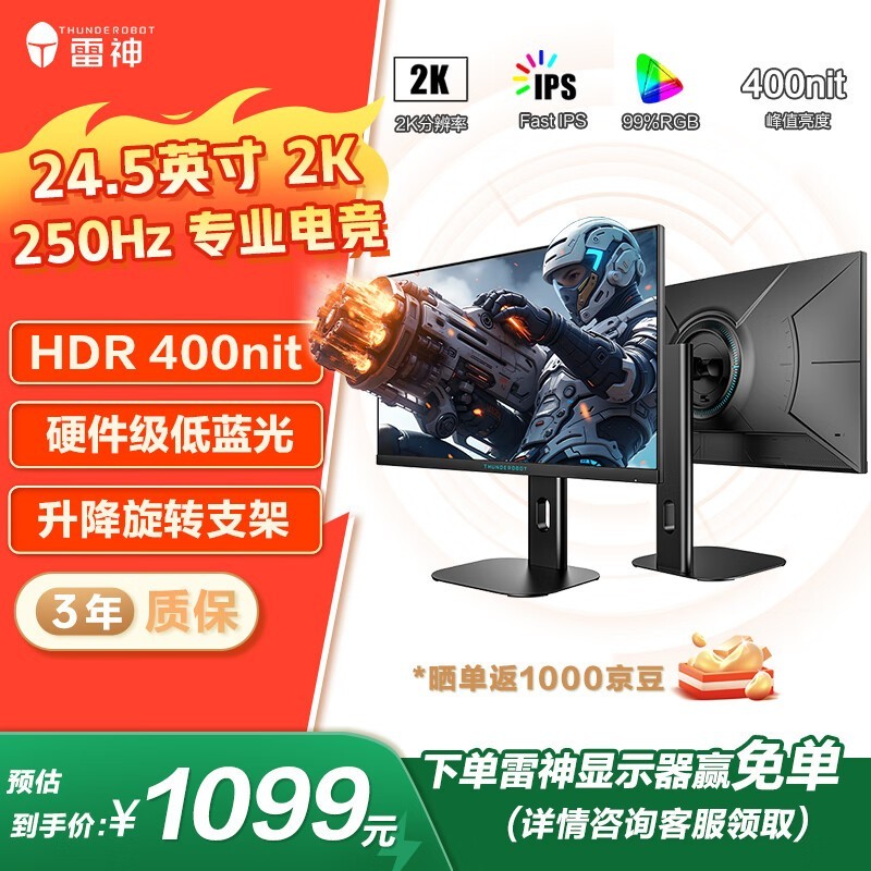 雷神黑武士24.5英寸IPS显示器京东优惠价1094元