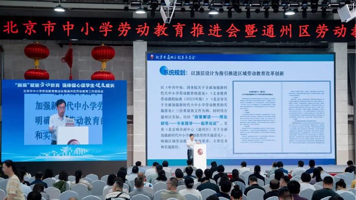 5月21日,由北京市教育委员会主办、北京市通州区教育委员会承办的北京市中小学劳动教育推进会暨通州区劳动教育工作现场会盛大举行。此次活动以“‘新质’赋能劳动教育,强体健心促学生健康成长”为主题,旨在深入贯彻劳动教育相关政策,展示区域劳动教育成果,为全市劳动教育发展提供交流平台。