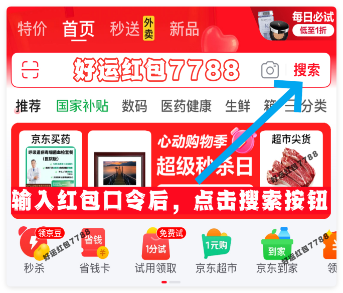 首先,划重点!今年天猫/淘宝和京东的618红包口令都是「好运红包7788」要记住!领的红包大小和你搜索的什么口令有关的!这个双平台通用口令包领到大的!记得每天去领!