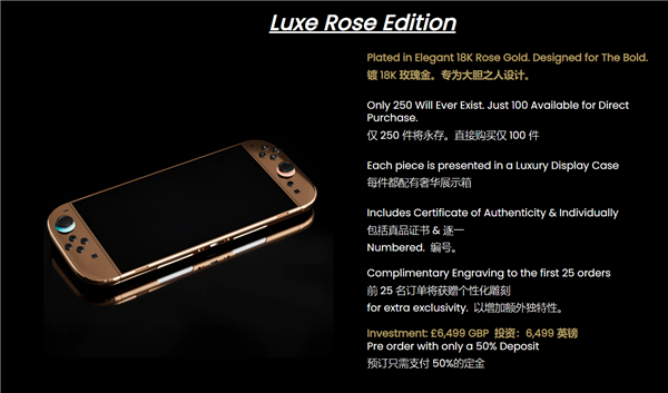 Luxe Rose玫瑰金版则以18K玫瑰金镀层搭配暖色调的奢华设计,售价6499英镑(约合人民币6.28万元)。