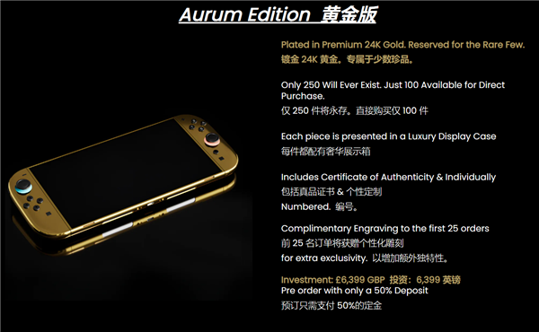 Aurum黄金版采用24K纯金镀层,售价6399英镑(约合人民币6.19万元)。