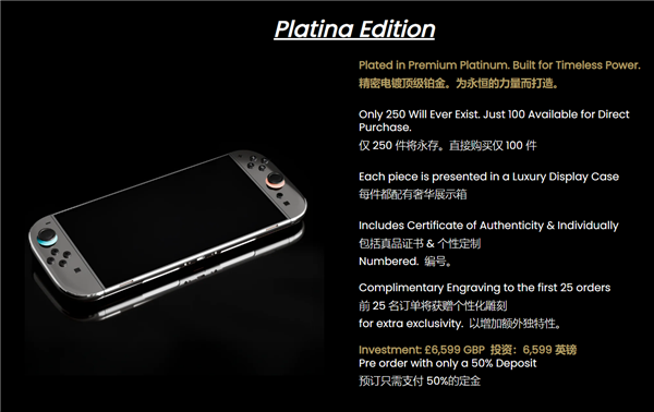 三个版本均全球限量250台,且只有100台可以直接购买,前25名预订用户可享受免费定制镌刻服务(可刻印姓名、徽标或纪念日期)、VIP专属优先发货通道以及限量编号徽章套装。