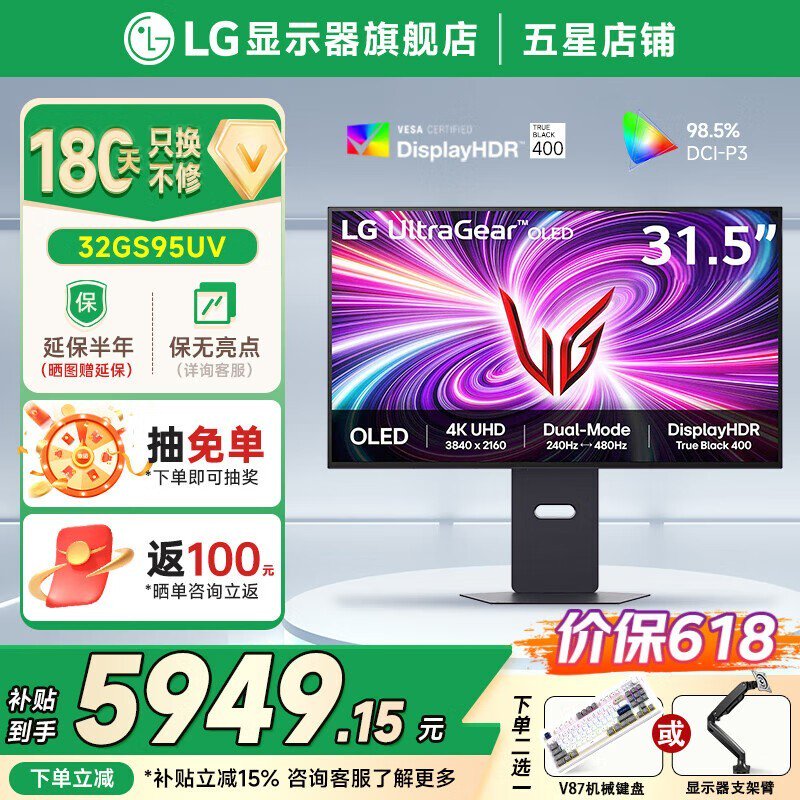 LG 32GS95UV电竞显示器京东促销价6999元