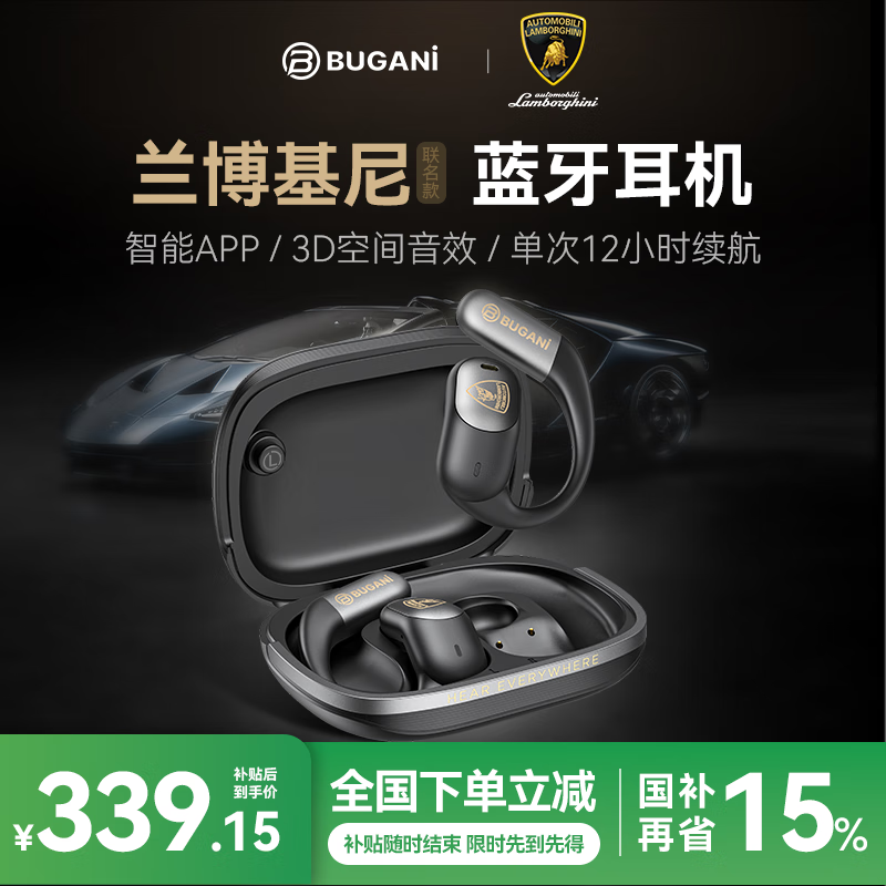 BUGANI Free B15无线蓝牙耳机运动专用降噪曜夜黑329元