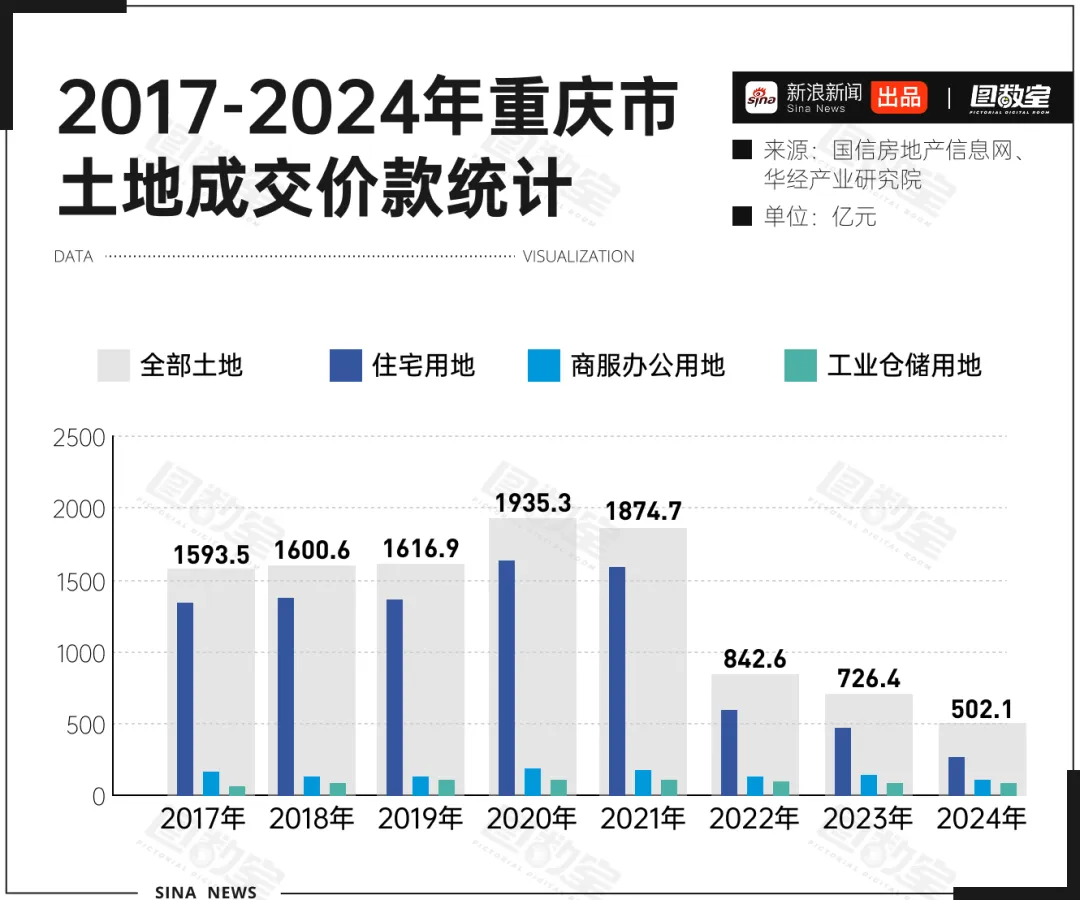 另一方面,政府土地财政收入锐减,从2020年的1900多亿锐减到2024年的500多亿,也在客观上促使重庆轨道交通不得不重新审视其票价体系,通过价格调整(适度上涨)来缓解运营压力。