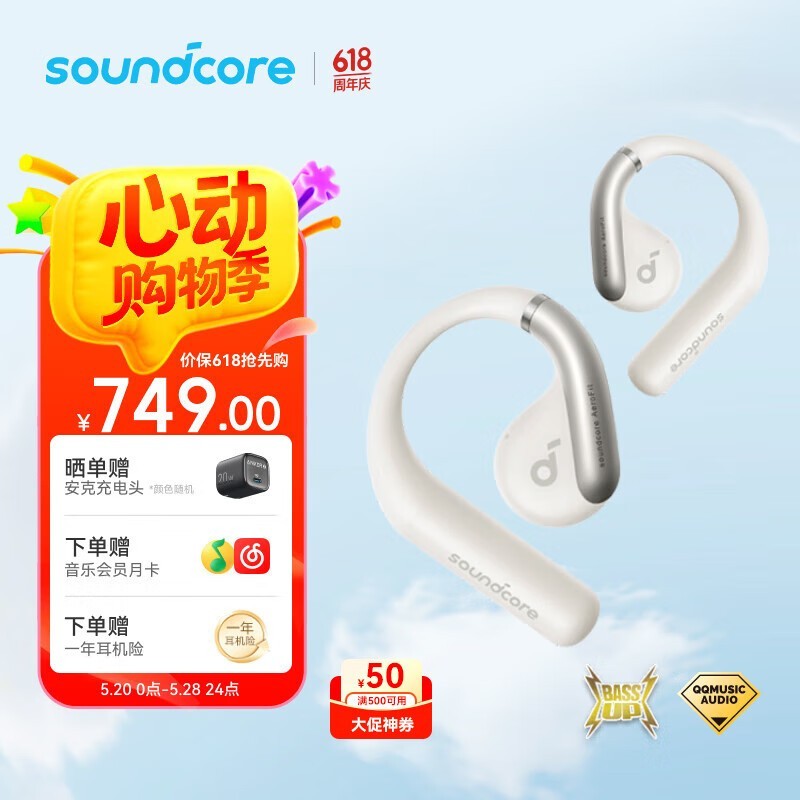 声阔A3872挂耳式降噪蓝牙耳机云霜白限时优惠价699元