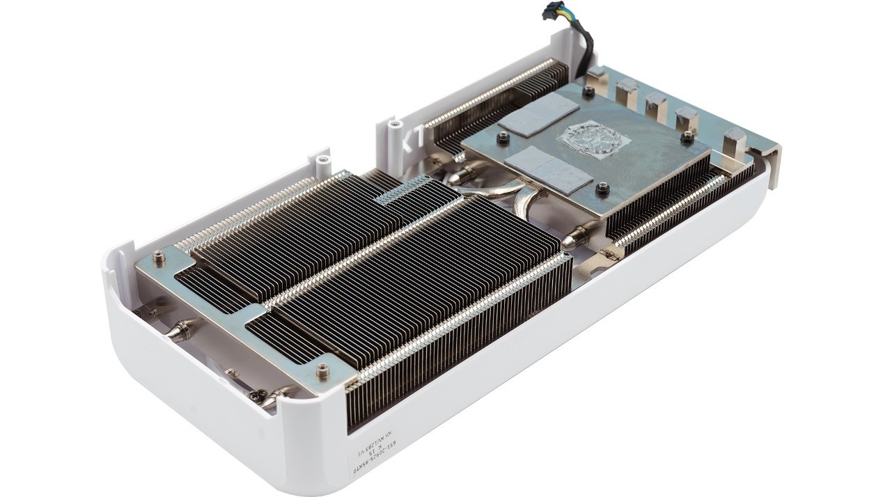 通过矩阵式鳍片布局与背板7条辅助散热镂空,整卡在2.5槽机身内实现了“高频不烫手”的平衡美学,既满足白色机箱玩家的视觉需求,又为ITX装机提供强兼容性。
