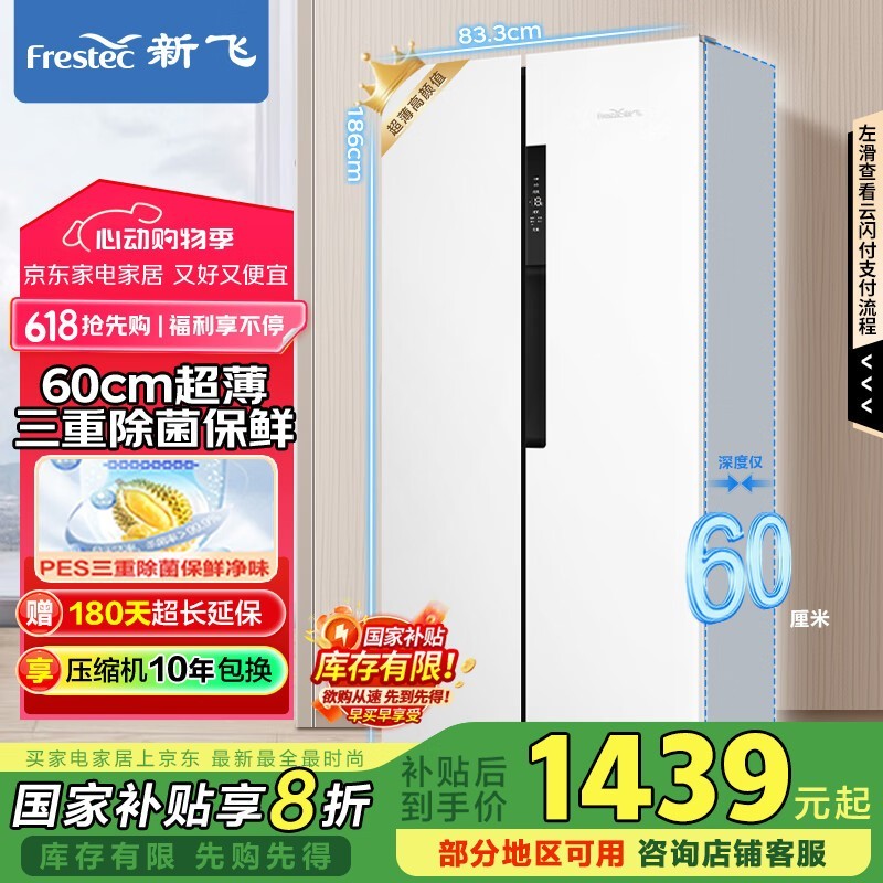 新飞450升对开门冰箱京东价低至1649元