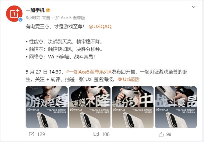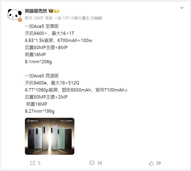 近日,多个消息透露,一加Ace 5 至尊版 / 竞速版手机将于 5 月 27 日 14:30 发布!同时,两款手机的外观配色也已经公布,一加Ace 5 至尊版将有幻影黑、清风蓝、燃力钛三色可选,竞速版中将有磐石黑、逐浪白、旷野绿三色可选。