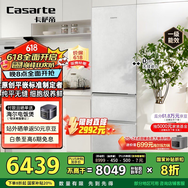 卡萨帝400L超薄冰箱限时特惠8459元