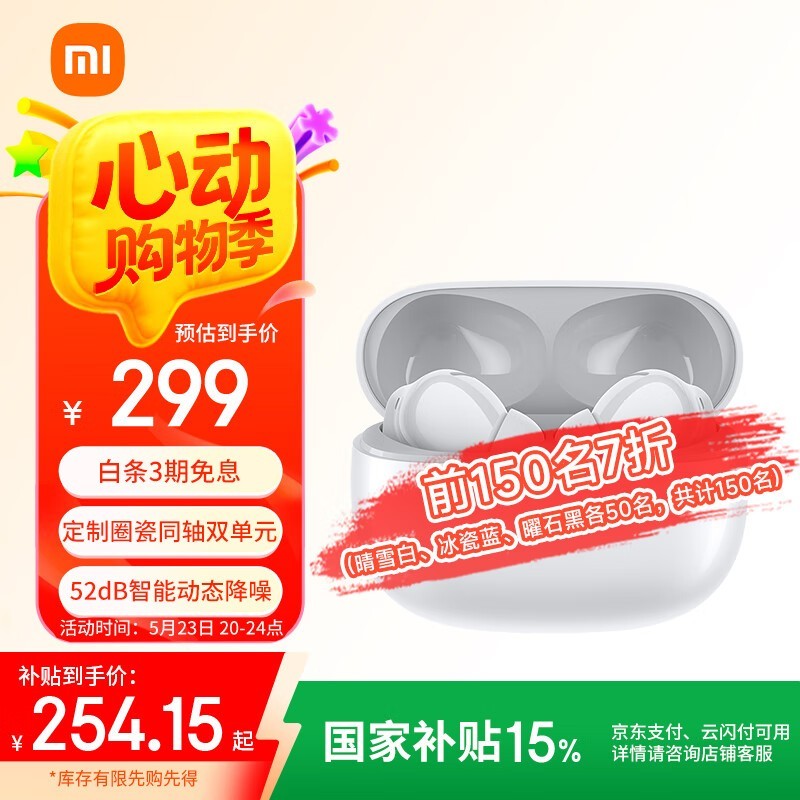 红米Buds 5 Pro晴雪白限时特惠177元