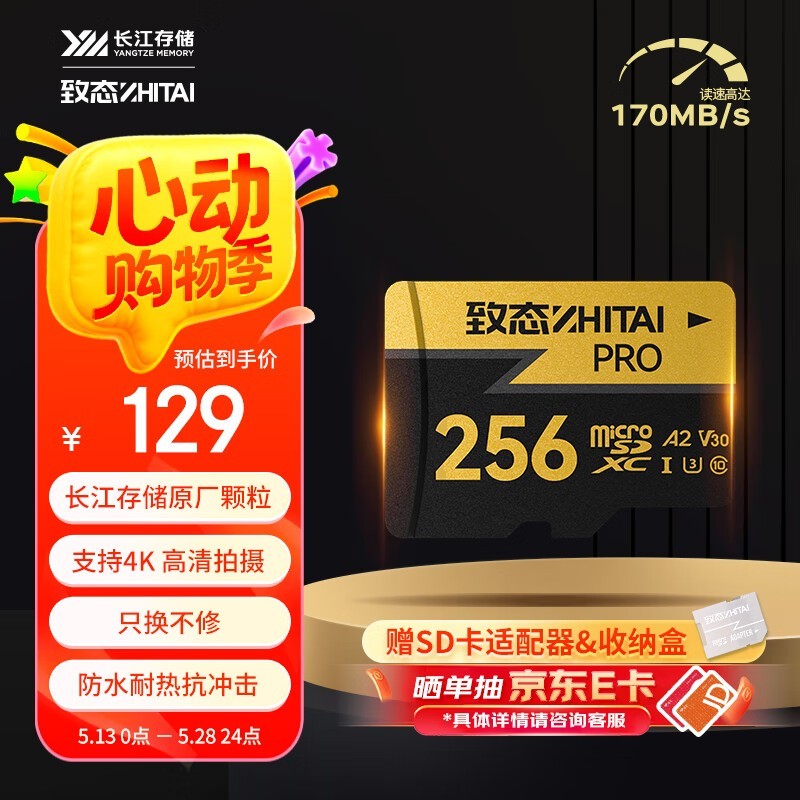 致态PRO专业高速MicroSD卡256GB限时特惠129元