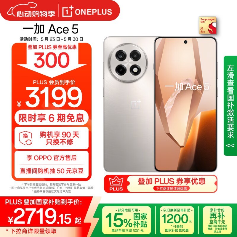 一加OnePlus Ace 5 16GB+1TB版京东优惠价2676元