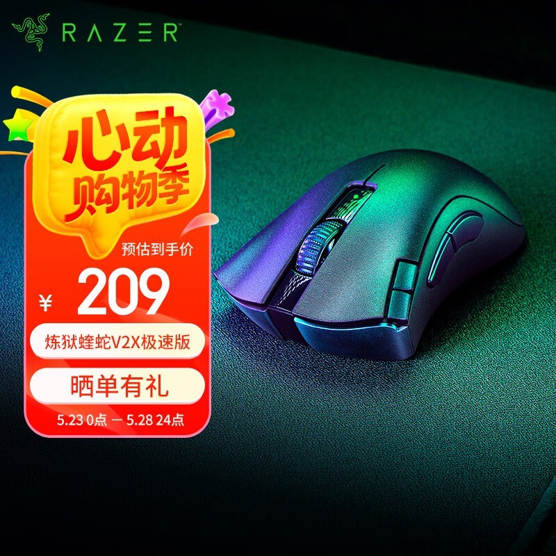 雷蛇炼狱蝰蛇V2 X极速版鼠标京东优惠价177元