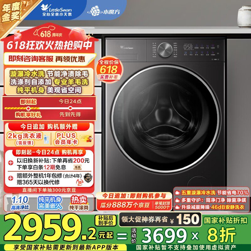 小天鹅小乌梅2滚筒洗衣机轻奢版钜惠,实付2119元