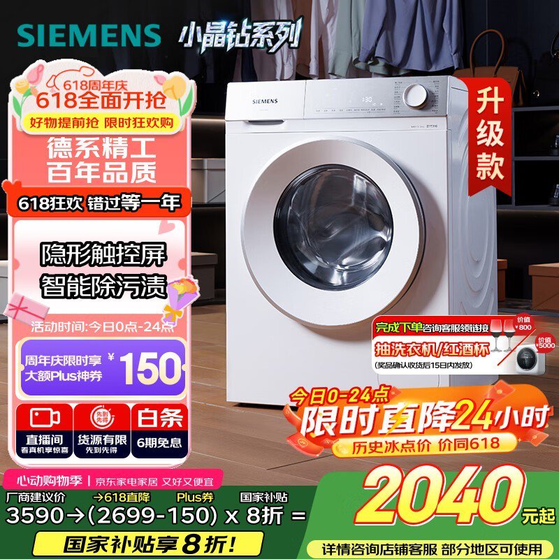 西门子10公斤滚筒洗衣机京东优惠价1399元
