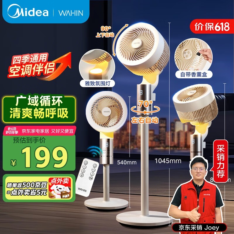 华凌美的空气循环电风扇2025新款语音智能遥控夏日清凉优选