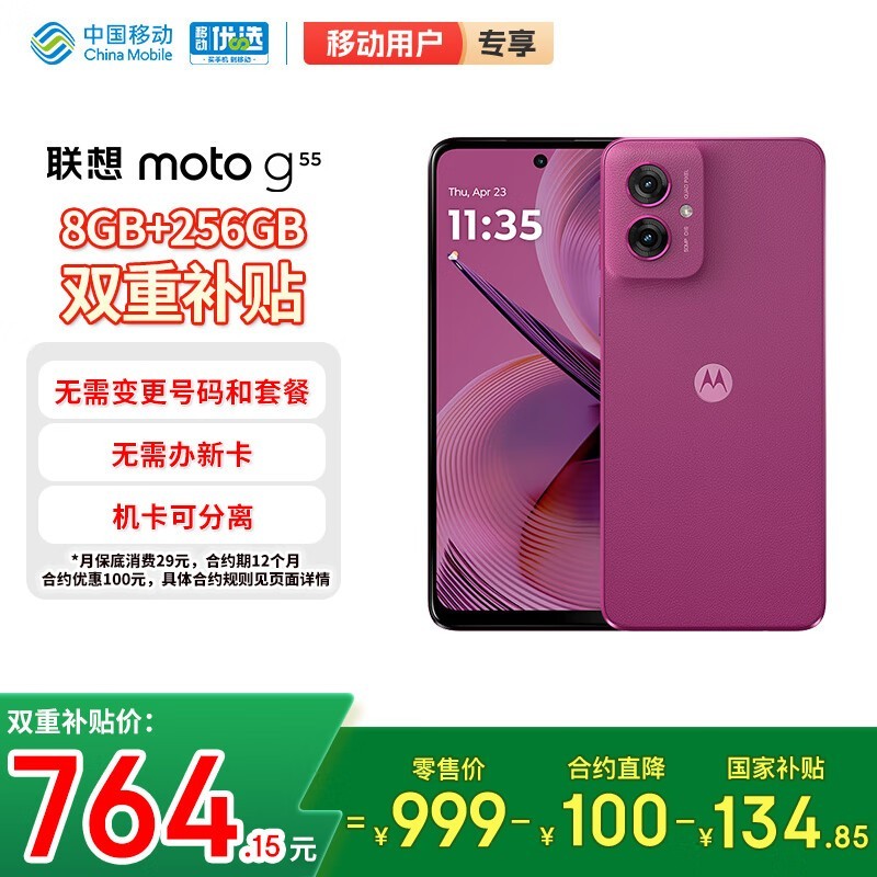 moto g55 5G(8GB+256GB霞光紫)京东低至764元