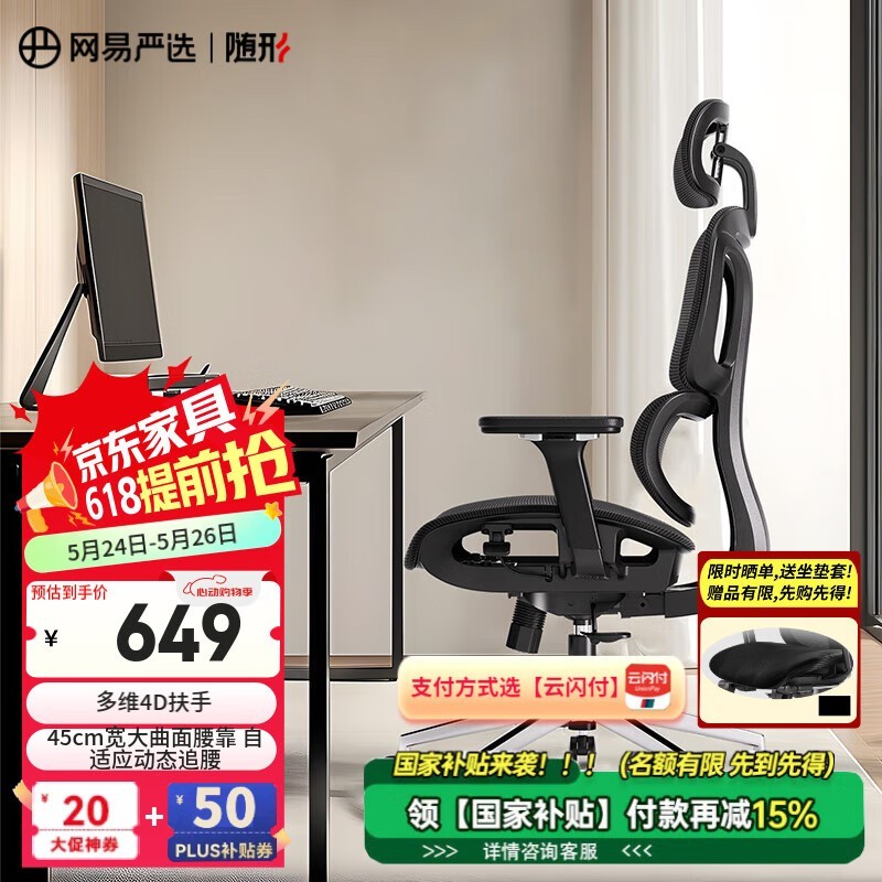 网易严选小蛮腰S9 Pro电脑椅京东促销价551元