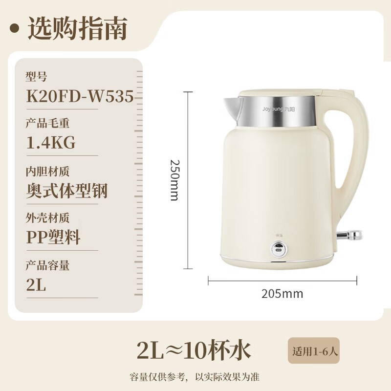 九阳W535电水壶2L 316L不锈钢 129元