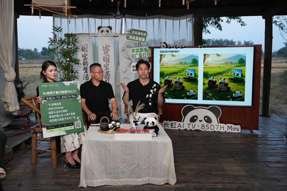 在电视区长虹AI TV为游客打造了“壁画沉浸观感”,同时更搭载熊猫主题频道与“熊猫小白”智能体,24小时陪伴式智能交互,真正让电视从单向“信息输出”走向与消费者“情感互动”。