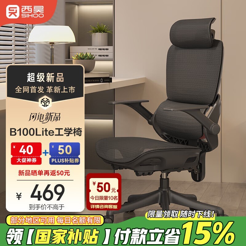 西昊B100Lite人体工学椅京东到手价284元