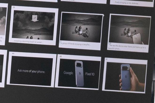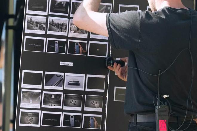 消息源称他在加拿大温哥华目击了一场“完整的谷歌 Pixel 10 广告拍摄”,现场曝光的故事板明确标注了“Pixel 10”字样,广告标语为“Ask more of your phone”。IT之家附上相关图片如下: