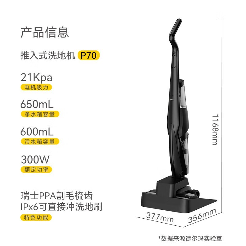 德尔玛P70无线智能洗地机,热水自洁高效清洁