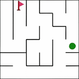 迷宫 Maze: 智能体获得一个初始图像,该图展示了迷宫的布局。其任务是在迷宫中从起点(绿色标记)出发,最终到达终点(红色旗帜所在位置)。