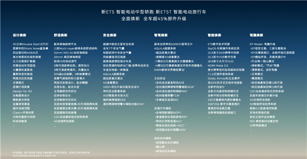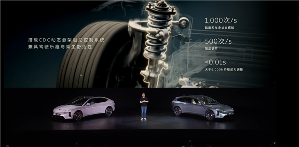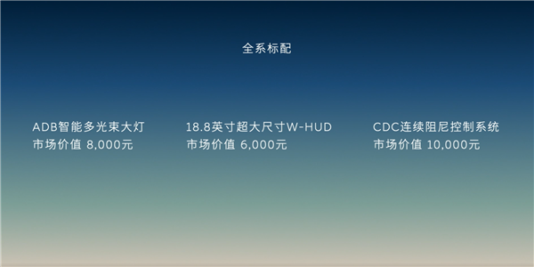 蔚来董事长李斌介绍,蔚来ET5、ET5T拥有超过200多项标配,超过45%固件升级,全系标配ADB智能多光束大灯(价值8千)、18.8英寸超大尺寸W-HED(价值6千)、CDC连续阻尼控制系统(价值1万),加量不加价。