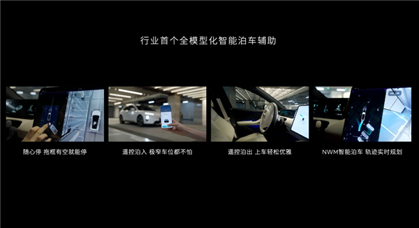 并且,车辆搭载行业首个全模型化智能泊车辅助,拥有目前行业最强的泊车辅助能力,停车场的环境识别能力超过不少老司机。随心停,有空位拖动屏幕即可泊车、遥控泊入/泊出极窄车位都不怕、NWM智能泊车,轨迹可实时规划。