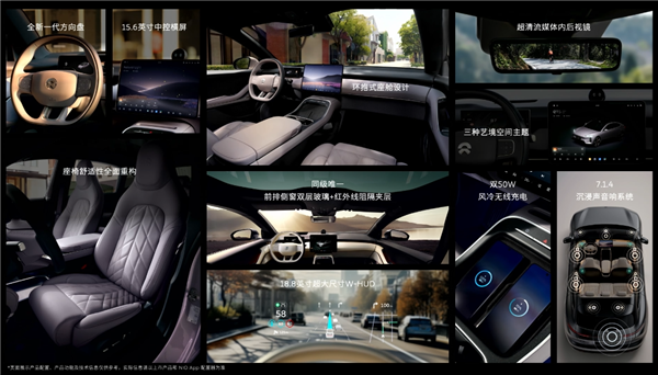 内饰整体设计变化不大,换装了ET9同款的横向中控屏,并采用怀挡机构,中控岛的储物空间也同步优化。座椅舒适性全面重构、配备同级唯一前排侧窗双层玻璃+红外线阻隔夹层、7.1.4沉浸式音箱系统、超清流媒体后视镜等。