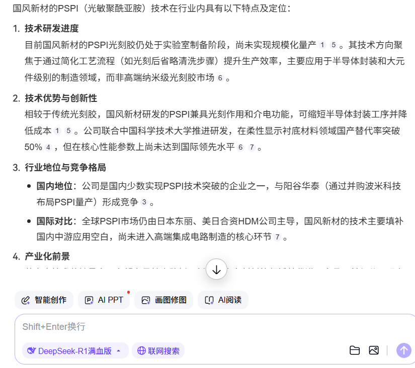 以上几个标的,最正宗的就是国风新材和阳谷华泰,而国风新材处于国内领先地位。其他几家技术水平都相对落后,PSPI最关键的是要有高分辨率,才能进入更高端的5纳米,3纳米的供货,目前,国内也只有国风新材的分辨率能进入国际第二梯队,其他的几家,他们自己报道能媲美国风新材的PSPI,这个媲美就跟小米手机能媲美苹果手机一个概念,所以,国风新材毫无疑问是龙头,而且,周五也是国风新材第一个启动,才带动了其他几个股票上涨,本周可以继续重点关注。