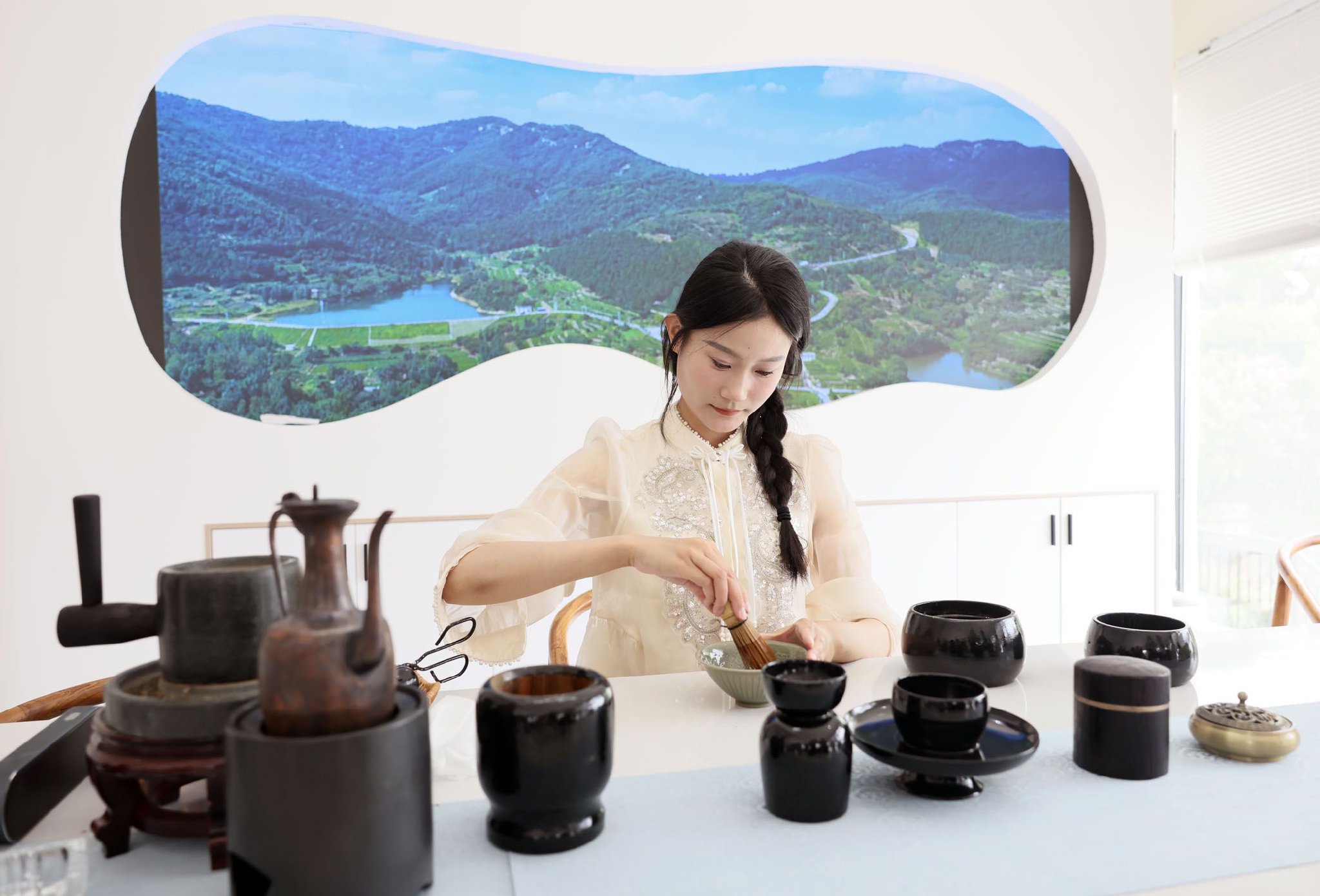 图为茶艺师在日照市岚山区“北门外1966”茶园的茶室演示茶艺。