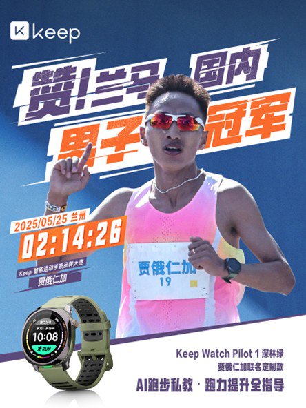 5月25日,兰州马拉松在兰州奥体中心激情开跑。马拉松精英运动员、Keep智能运动手表品牌大使贾俄仁加以2小时14分26秒的成绩,获得兰州马拉松国内男子组第一,同时刷新了兰马国内运动员最佳成绩。