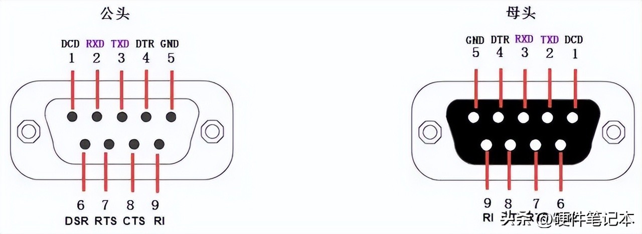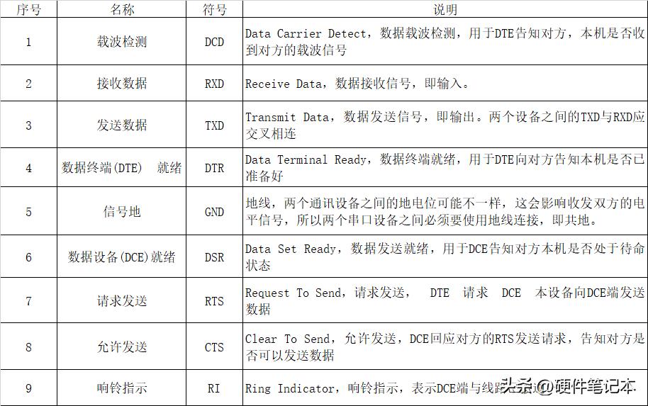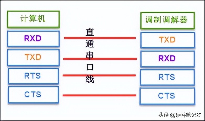 上表中的是计算机端的DB9公头标准接法,由于两个通讯设备之间的收发信号(RXD与TXD)应交叉相连,所以调制调解器端的DB9母头的收发信号接法一般与公头的相反,两个设备之间连接时,只要使用"直通型"的串口线连接起来即可。