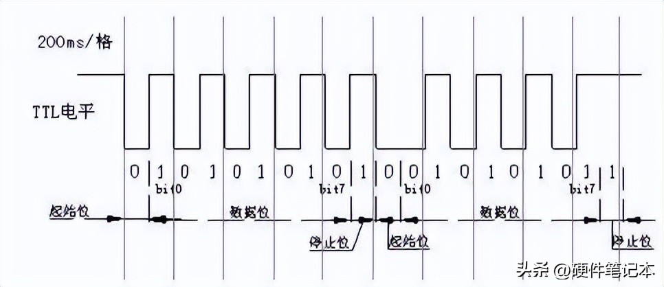 起始位: 起始位必须是持续一个比特时间的逻辑0电平,标志传输一个字符的开始,接收方可用起始位使自己的接收时钟与发送方的数据同步。