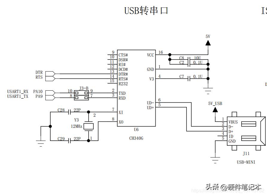 如果使用USB转串口也可以实现串口通讯,USB转串口电路图如下所示