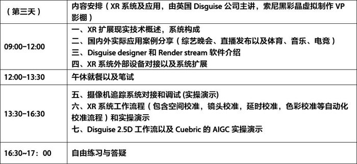 为进一步推动国内VP/XR虚拟节目制作技术水平的提高,加强影视创作与节目制作技巧交流,尽快掌握最新VP/XR虚拟节目制作系统的基础和使用,充分了解AIGC在VP/XR应用中的发展趋势,索尼影像技术学院联合英国Disguise公司以及秀加科技(北京)有限公司,计划在2025年6月下旬推出虚拟制作技术基础培训班。