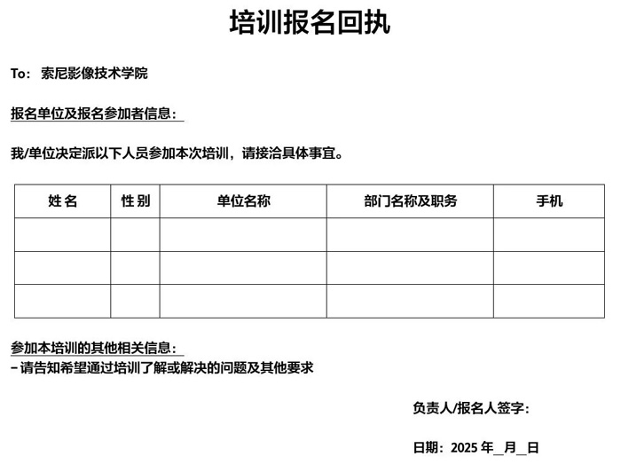 培训完成后,授予索尼影像技术学院培训结业证书