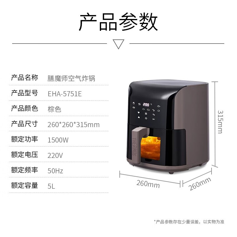 膳魔师空气炸锅EHA-5751E黑款5L大容量多功能厨房电器多重优惠价305元